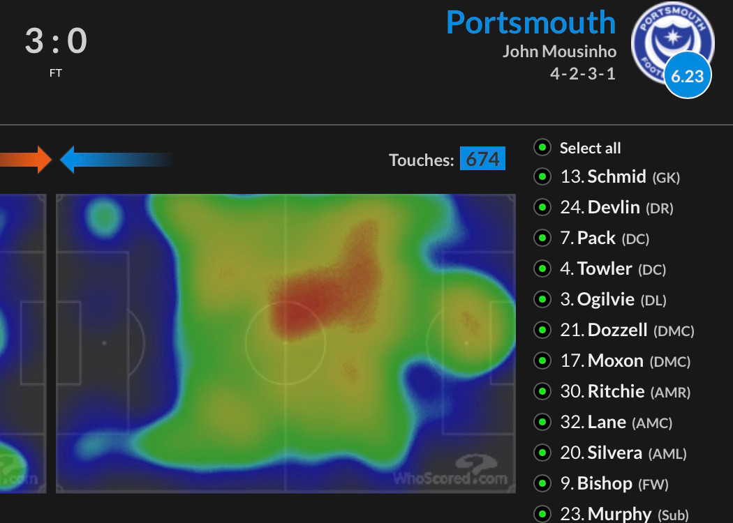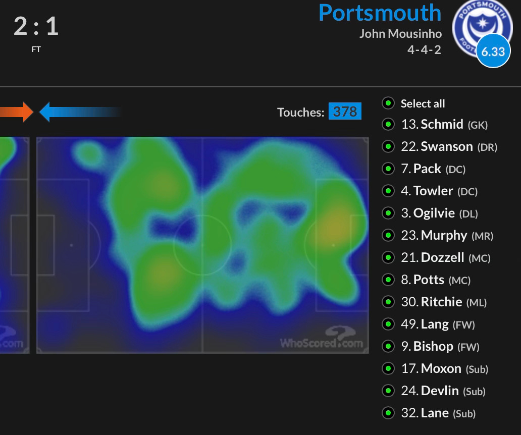 Analysing Portsmouth's effectiveness through the analysis of player touch Heat-maps