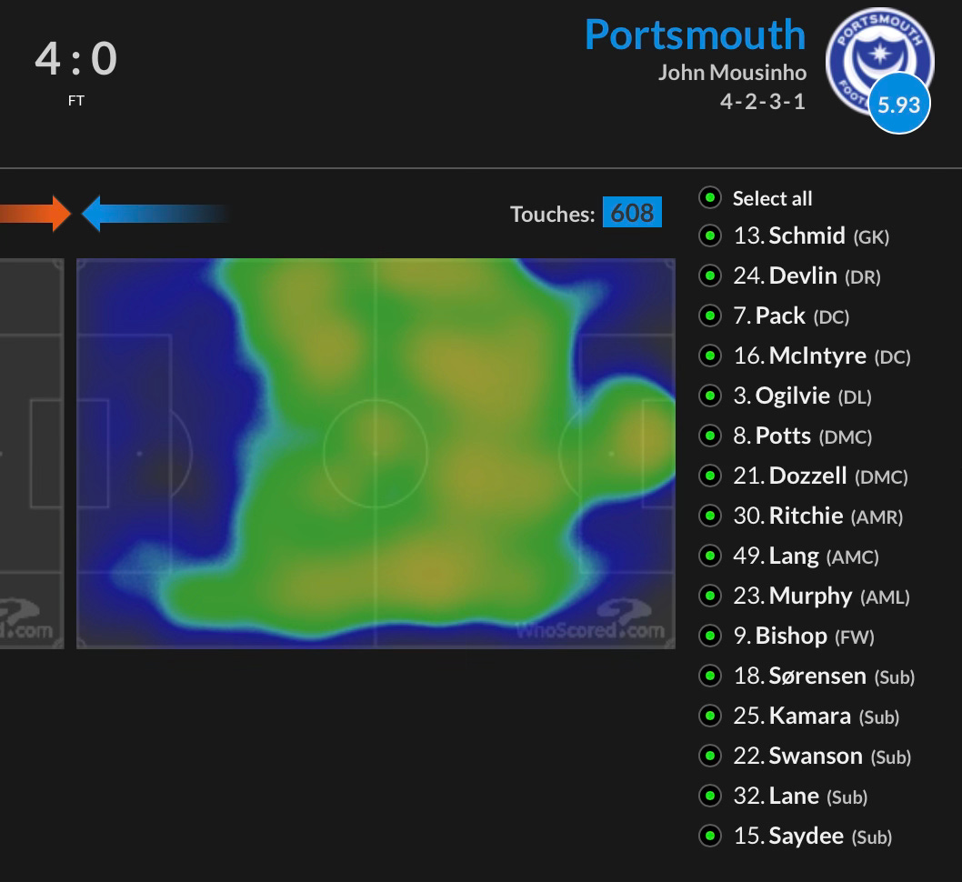 Portsmouth's recent run of 6 matches has yielded 4 defeats and just 2 victories. This analysis attempts to use heat-maps (player touches) to draw conclusions.